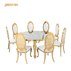 Atacado Casamento Evento Aço Inoxidável Vidro De Ouro Mesa De Jantar Redonda e Cadeira Set
