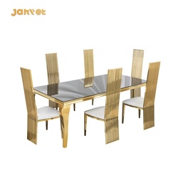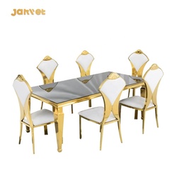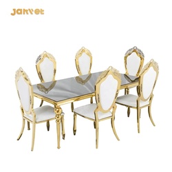 Mobília luxuosa do evento do casamento do ouro do aço inoxidável Mesa De Jantar Set 6 Seater